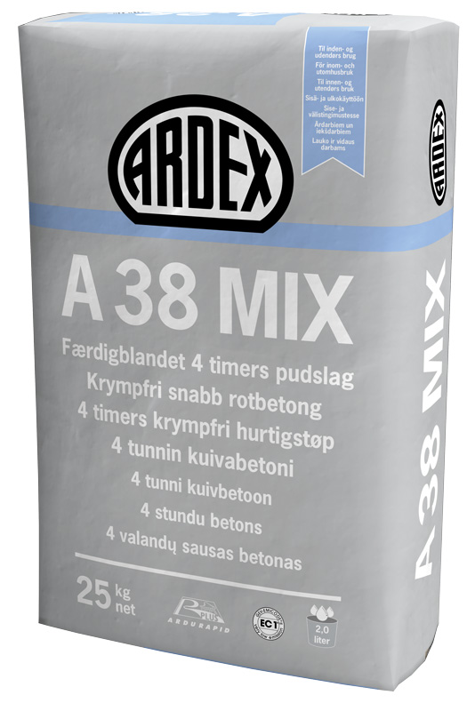Samaisīt līdz mitras zemes konsistencei. Maisīšana, klāšana, nivelēšana un līdzināšana ir jāizdara 60 minūšu laikā. Maisījuma fiksēšanai pie pamatnes izmantojiet ARDEX A18 vai pagatavojiet saķeres dispersiju, 1,75 l ARDEX E100 sajauc ar 1,75 l ūdeni un sajauc ar 25 kg ARDEX A38 MIX. Saķeres dispersija jāklāj uz pamata un rūpīgi jāieberzē ar suku. Java jāklāj uz mitras, vēl nenožuvušas saķeres dispersijas. Saķeres dispersijai iekšdarbos, ARDEX E100 var aizvietot ar ARDEX P51. Ievērot vispārējās prasības grīdu betonēšanai. Siltās grīdas: ARDEX A38 MIX ir piemērots izmantošanai siltajās grīdās