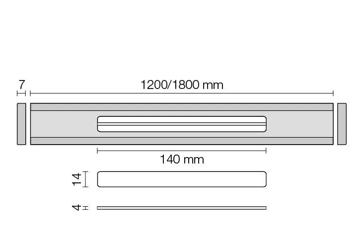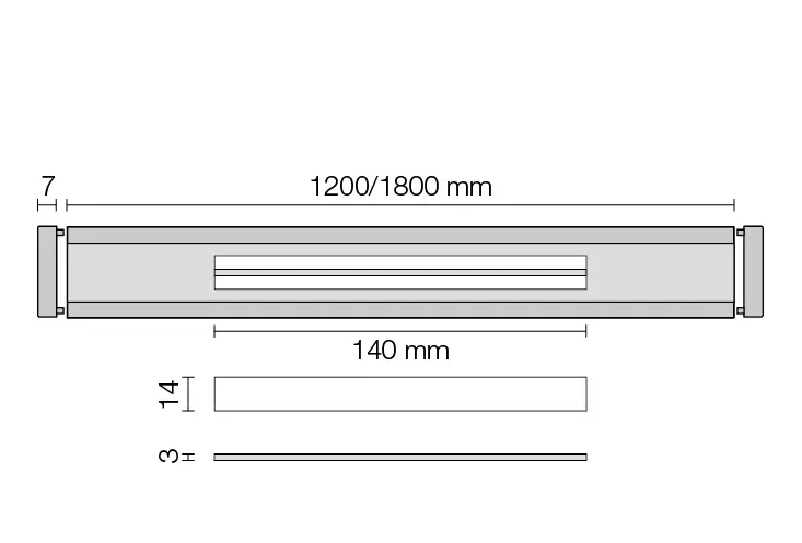 Vienkārši piezāģējams nepieciešamajā garumā. Profilam ir tikai 14 mm plata un 140 mm gara redzama atvere ūdens novadīšanai. Profils pieejams izgatavots no skrāpēta V4A nerūsējošā tērauda vai ar TRENDLINE struktūrpārklājumu pārklāta alumīnija 120 cm vai 180 cm garumā.