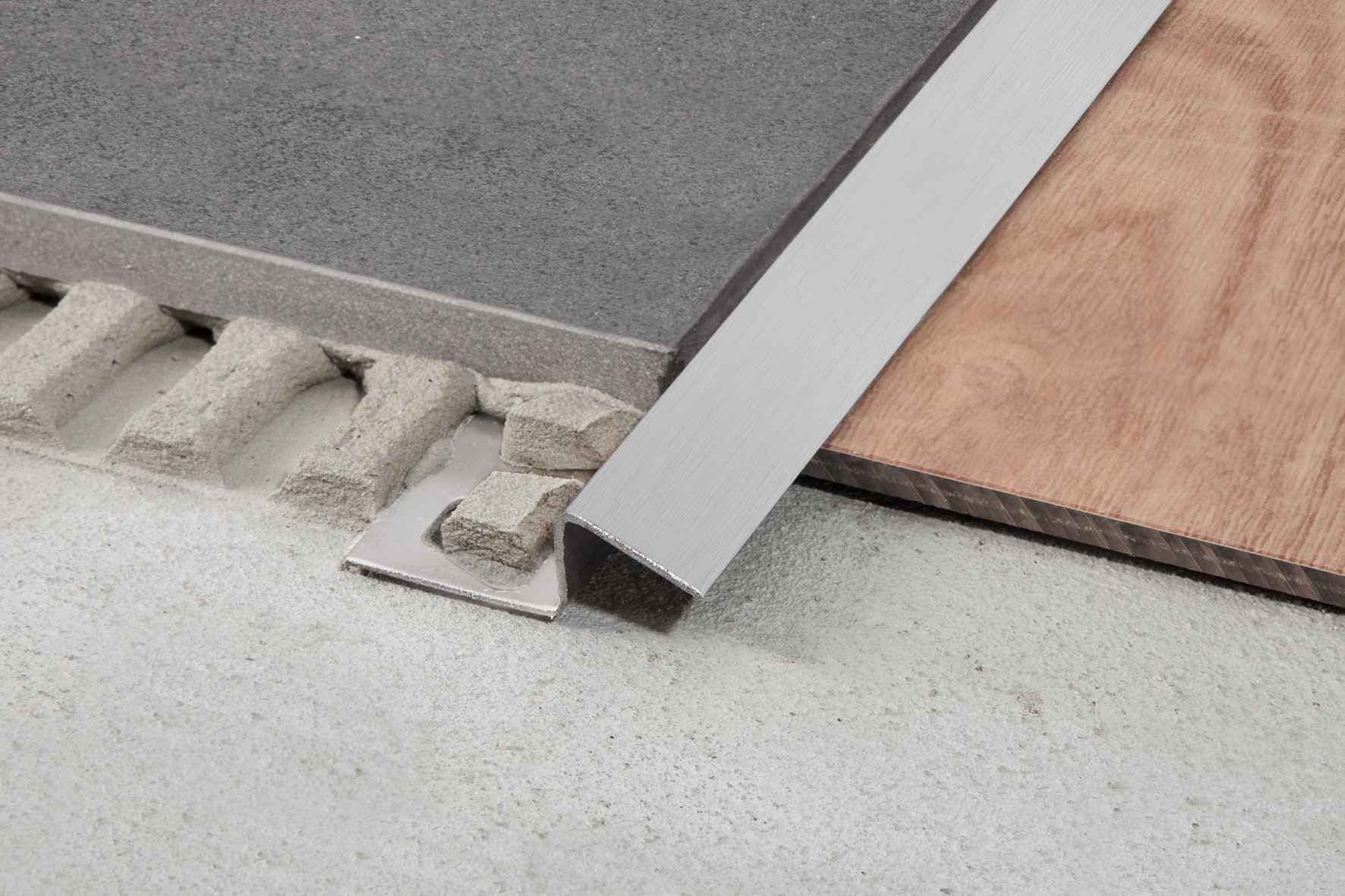 RENO-TK pārejas profils dažāda augstuma grīdas segumu bez pakāpiena pārajas izveidošanai, piemēram, flīžu un vinila, PVC, linoleja vai paklāja pārejas zonā. Šī profila slīpā redzamā virsma novērš paklupšanas risku starp dažāda augstuma grīdas segumiem.