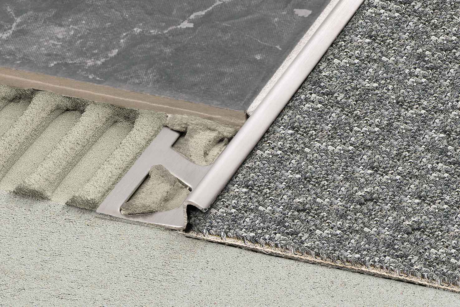 Blakus esošo apakšējo segumu (piemēram, paklāju vai elastīgo grīdas segumu) var ievietot 6 mm augstajā profila kamerā, šādi arī paslēpjot un aizsargājot grieztās seguma malas.