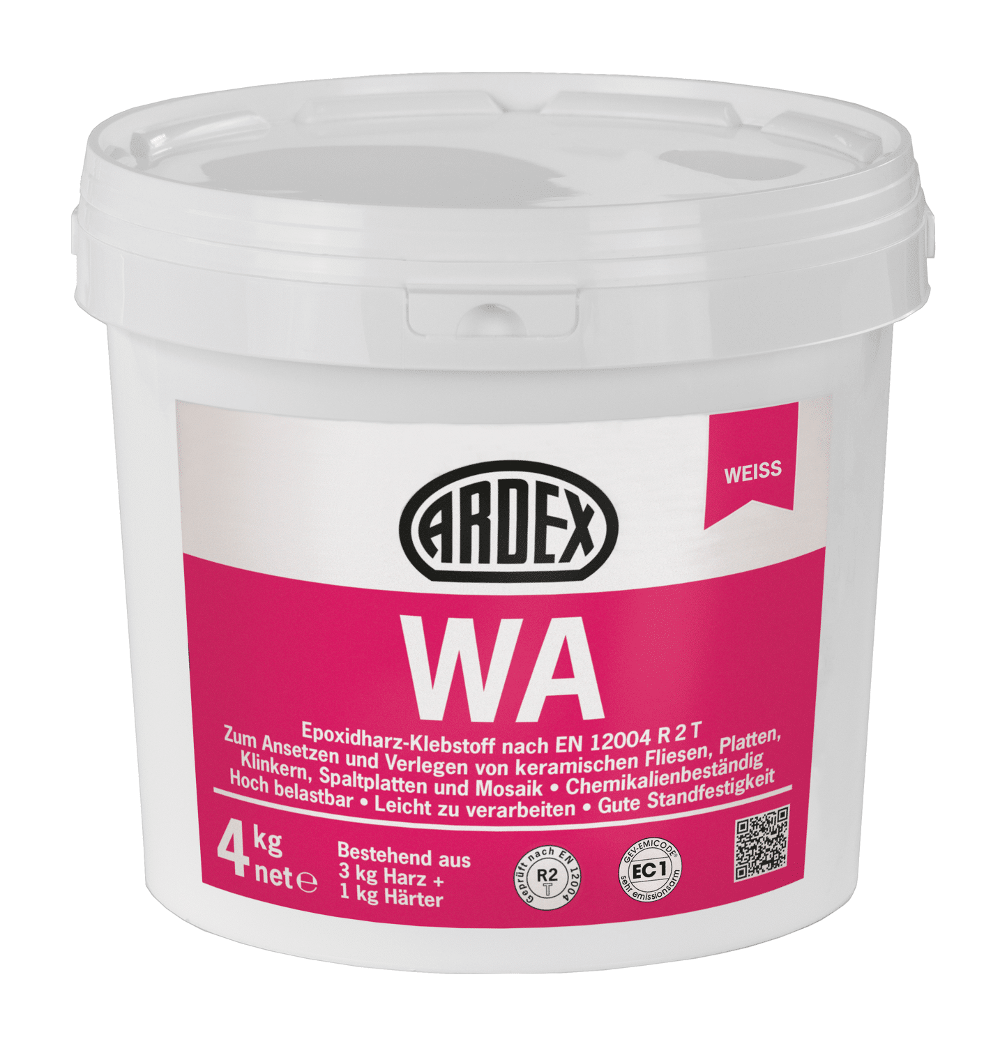 Ķīmiskā izturība: pēc sacietēšanas ARDEX WA ir izturīga pret hlorētu ūdeni, parastajiem tīrīšanas līdzekļiem, sāļu šķīdumiem, minerāleļļu, taukvielām, sārmiem, augļu sulām u.c. ķīmiskām vielām (skatīt tehnisko aprakstu). Pilna ķīmiskā noturība tiek sasniegta pēc 7 dienām, ja temperatūra ir no +18 C līdz +20 C.